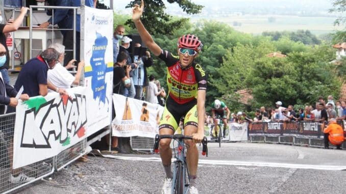 Successo di tappa e secondo posto in classifica finale per Francesco Calì, portacolori dell’Aspiratori Otelli Vtfm Carin Loxam Baiocchi Alchem Cadeo Carpaneto in evidenza nella giornata conclusiva del Giro del Friuli Juniores. L’atleta modenese del sodalizio piacentino-bresciano ha vinto per distacco la terza e ultima frazione, che dopo 130 chilometri vedeva la finish line a San Daniele del Friuli dopo la partenza a Fontanafredda. Calì ha superato il marchigiano Gianmarco Garofoli (Team LVF) e Davide De Pretto (Borgo Molino Rinascita Ormelle), rispettivamente secondo e terzo di giornata. Quest’ultimo si è aggiudicato l’edizione 2020 della corsa a tappe friulana, con Calì d’argento solamente per due secondi nel’arco della tre giorni della manifestazione.