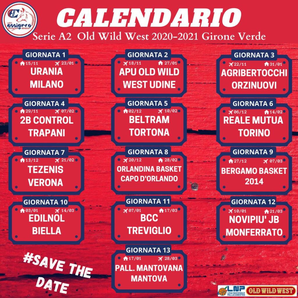 L’esordio è previsto in casa, contro l’Urania Milano al PalaBanca nel fine settimana del 15 novembre, gara che precede il primo turno infrasettimanale del 18 novembre sul campo di Udine. La terza giornata vedrà i biancorossoblu ancora in trasferta ad Orzinuovi, prima di due match interni rispettivamente contro Trapani e Tortona (anche quest’ultima gara si disputerà in infrasettimanale il 2 dicembre). La stagione regolare terminerà il 28 marzo quando l’Assigeco Piacenza andrà a fare visita a Mantova.