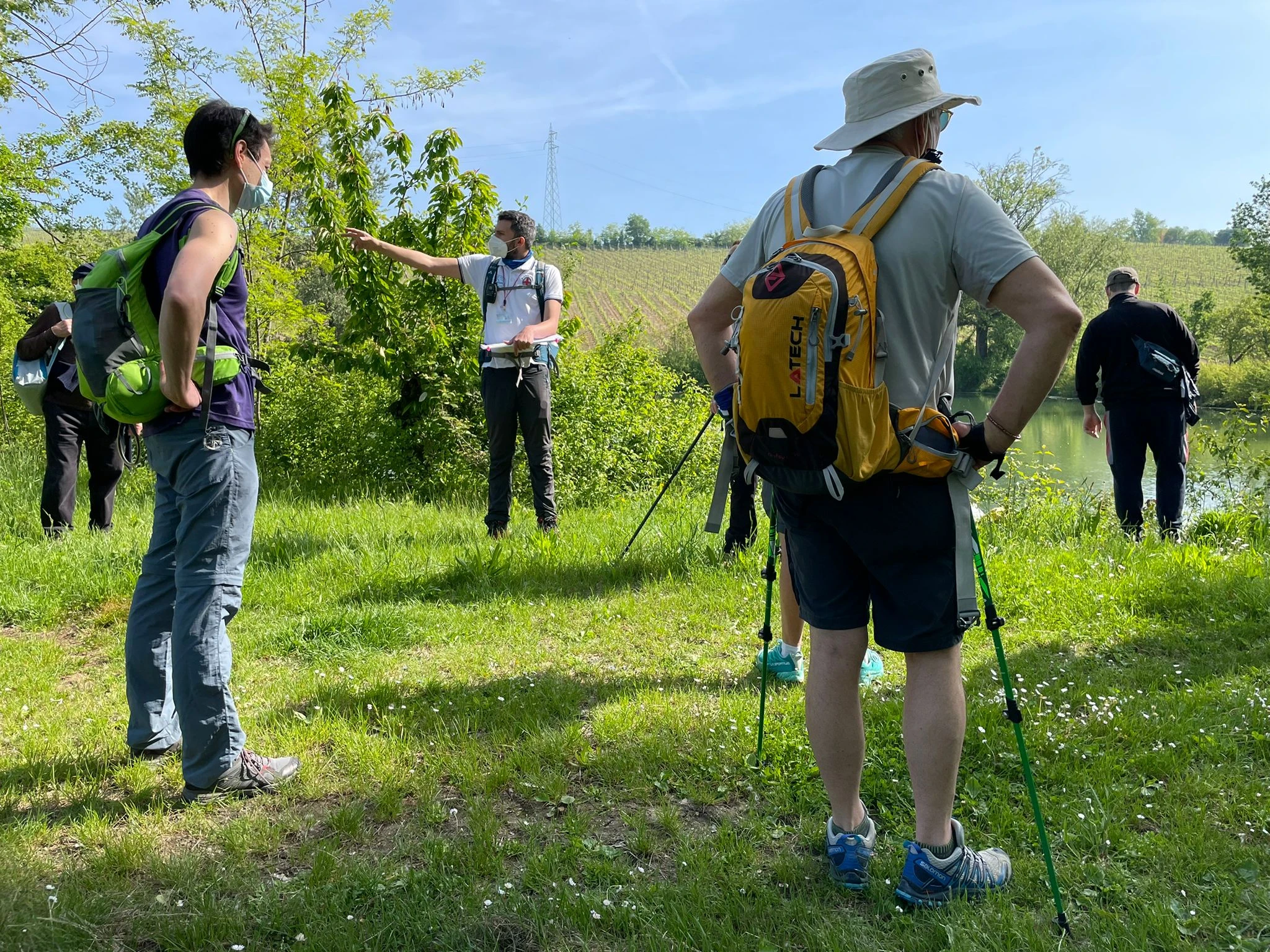 Nella mattinata di domenica 9 maggio i partecipanti sono stati accolti a Vicomarino di Ziano Piacentino da Elaine Jeanne Januszewski, consigliere con delega al turismo del Comune, che ha ringraziato a nome dell’amministrazione gli organizzatori per aver scelto il comune di Ziano come territorio di riferimento di questo appuntamento e in particolare Vicomarino, una delle sette frazioni, con il suo millenario castello che nel corso della sua storia è diventato di proprietà degli Scotti, poi dei Dal Verme e degli Anguissola e che si è trasformato successivamente in dimora residenziale e inglobato a un’azienda agricola. Januszewski ha poi ricordato il progetto comunale della realizzazione di tre anelli escursionistici, con punto di partenza a Ziano, uno dei quali, di 22 chilometri, si collegherà al Sentiero nell’ottica di favorire la sinergia dei percorsi presenti in Val Tidone.Dopo i saluti di Pietro Luigi Bonoldi e di Greta Cavallari in rappresentanza dell’associazione ‘Sentiero del Tidone’ che hanno evidenziato le finalità del progetto ‘Val Tidone Lentamente’, i due gruppi si sono divisi: gli escursionisti a piedi accompagnati da Giuseppe Noroni, guida ambientale escursionistica AIGAE de I Calcaterra, e i partecipanti in e-bike condotti dalla guida Paolo Solenghi.