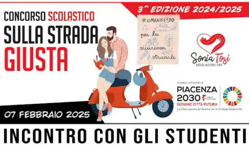 Incontro con gli studenti, Venerdì 7 febbraio al Teatro Politeama, per la terza edizione del progetto/concorso scolastico “Sulla Strada Giusta” organizzato dall’Associazione Sonia Tosi, impegnata a promuovere la cultura della sicurezza e comportamenti responsabili al fine di prevenire la mortalità stradale. Quest’anno l’incontro si focalizzerà sulla mobilità sostenibile e responsabile.