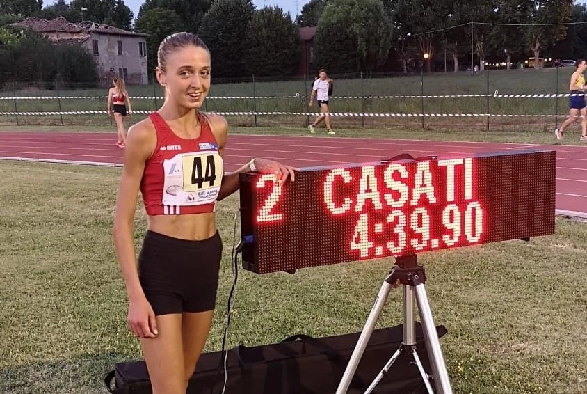 Emma Casati ha siglato un nuovo primato: nei 1500m di Rubiera (RE) del 21 luglio, la giovane biancorossa ha volato in 4’39”90, crono che rappresenta non solo il record provinciale, ma anche la seconda migliore prestazione italiana dell’anno sulla distanza per la categoria. Grande soddisfazione per il tecnico Giuliano Fornasari, che vede la propria atleta lanciata ai vertici