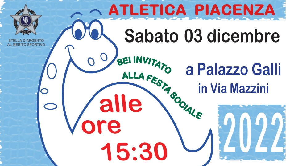 Sabato 3 dicembre si terrà la festa dell’Atletica Piacenza a Palazzo Galli. Sarà l’occasione per il sodalizio biancorosso di ripercorrere i successi della stagione 2022.
