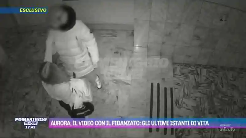 Per provare a ricostruire cosa sia accaduto prima della caduta, la trasmissione di Canale 5 mostra in esclusiva le immagini girate da una telecamera interna del palazzo. Nel filmato si vede Aurora uscire dall’ascensore al piano terra e trovare l’ex fidanzato ad attenderla. I due risalgono e circa un’ora più tardi il 15enne viene intercettato dalla stessa telecamera mentre corre fuori dall’edificio.