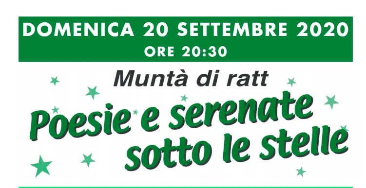 Poesia e musica. Ed ecco i poeti: Alberto Bettinardi, Luigi Ruggeri, Fabrizio Solenghi, Pietro Pizzi, Pietro Rebecchi e Pierluigi Carenzi sono i nomi dei poeti dialettali che renderanno il pubblico partecipe dell’arte vernacolare del Piacentino. “Poesie, e serenate sotto le stelle” è il titolo della serata alla Muntà, e le note della serata saranno a cura dell’orchestra Marino Castelli con Gigi e Mauro Miglioli e Fabio Sangiovanni. E non solo: prevista l’esibizione anche del tenore Gianni Zucca, della soprano Rebecca Brusamonti e Daniela Bergoni che completano così la “squadra” dei cantanti. Sotto la conduzione di Marilena Massarini, l’evento si prospetta imperdibile nella splendida cornice della Muntà di Ratt, a Piacenza.