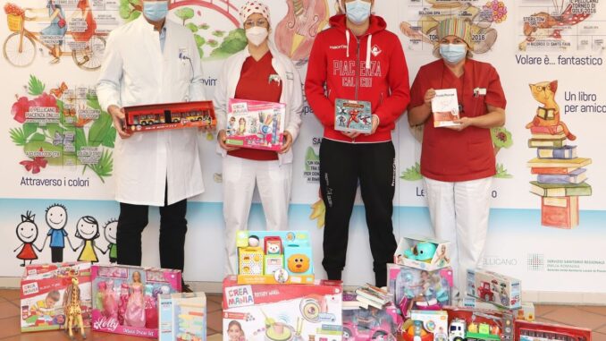 Campioni non solo sul campo, ma anche nella solidarietà. I giocatori del Piacenza Calcio hanno voluto festeggiare l’imminente Santa Lucia, tradizionalmente appuntamento per i regali ai più piccoli, con un bellissimo gesto a favore dei bimbi e ragazzi ricoverati in Pediatria all’ospedale di Piacenza.