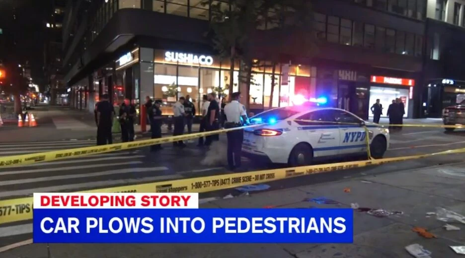 Una donna ha investito sette pedoni a New York domenica notte. Alla polizia la conducente ha raccontato di aver pregato Dio e di aver chiuso gli occhi mentre passava con il rosso. Racconto che ora meriterà di essere vagliato anche attraverso una perizia psichiatrica.