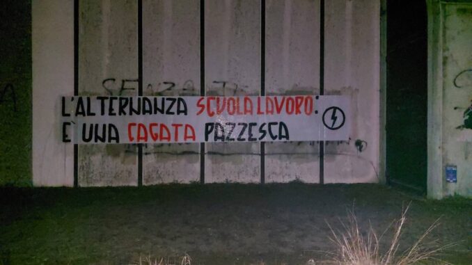 Azione del Blocco Studentesco: “Si scrive alternanza, si legge sfruttamento”. È questo il testo di uno degli striscioni affissi e firmati dagli studenti del fulmine cerchiato.