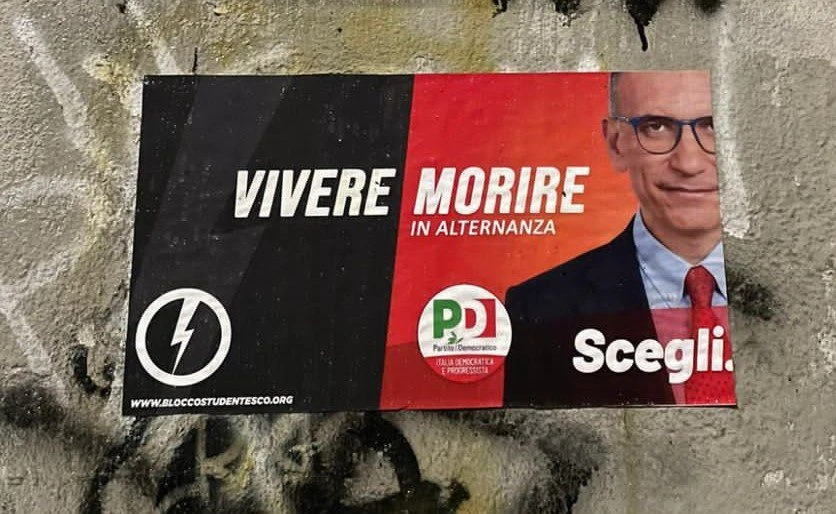 “Abbiamo deciso di usare l’ormai famigerato manifesto elettorale del Partito Democratico – spiega in una nota Paolo Gazzola, responsabile locale del Blocco Studentesco – perché riteniamo che l’unica speranza che il partito di Enrico Letta sta offrendo agli studenti italiani sia proprio quella di un atroce morte sul lavoro. Infatti, è stato proprio il suo Partito a varare la riforma della ‘Buona scuola’, in cui nel 2015 si istituiva l’obbligatorietà dello stage per tutte le scuole superiori ed è sempre il suo Partito che negli anni ha distrutto il mondo del lavoro sostenendo Monti e la Legge Fornero, cui seguirono gli otto decreti del Jobs Act. Ha la sindrome del pentimento?”.