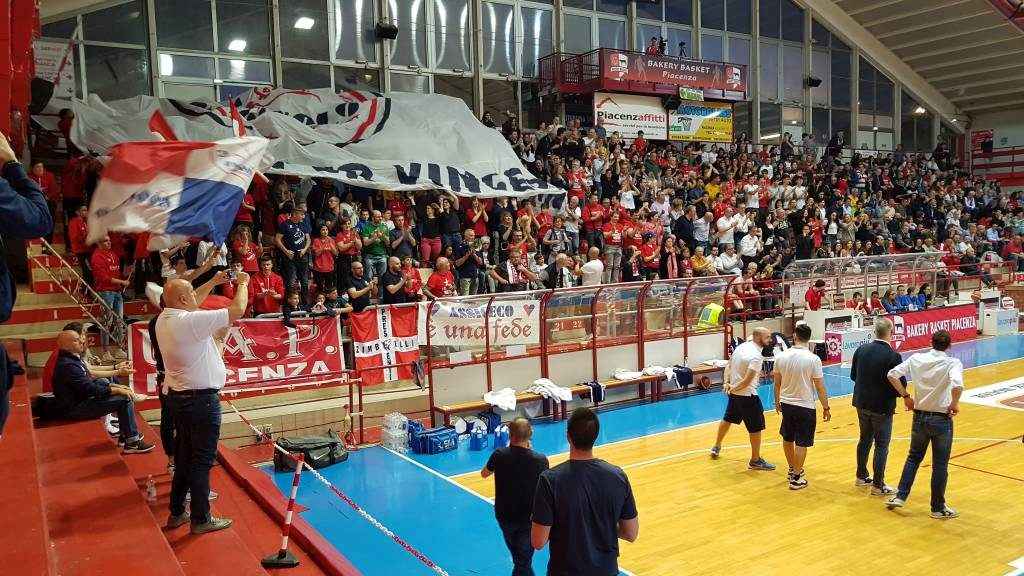 La Bakery Piacenza vince il secondo derby del basket piacentino e spera ancora nella salvezza. Uno spettacolo di colori, una grande festa sugli spalti con il pubblico delle grandissime occasioni, e non poteva essere altrimenti nella partita più sentita dell’anno.
