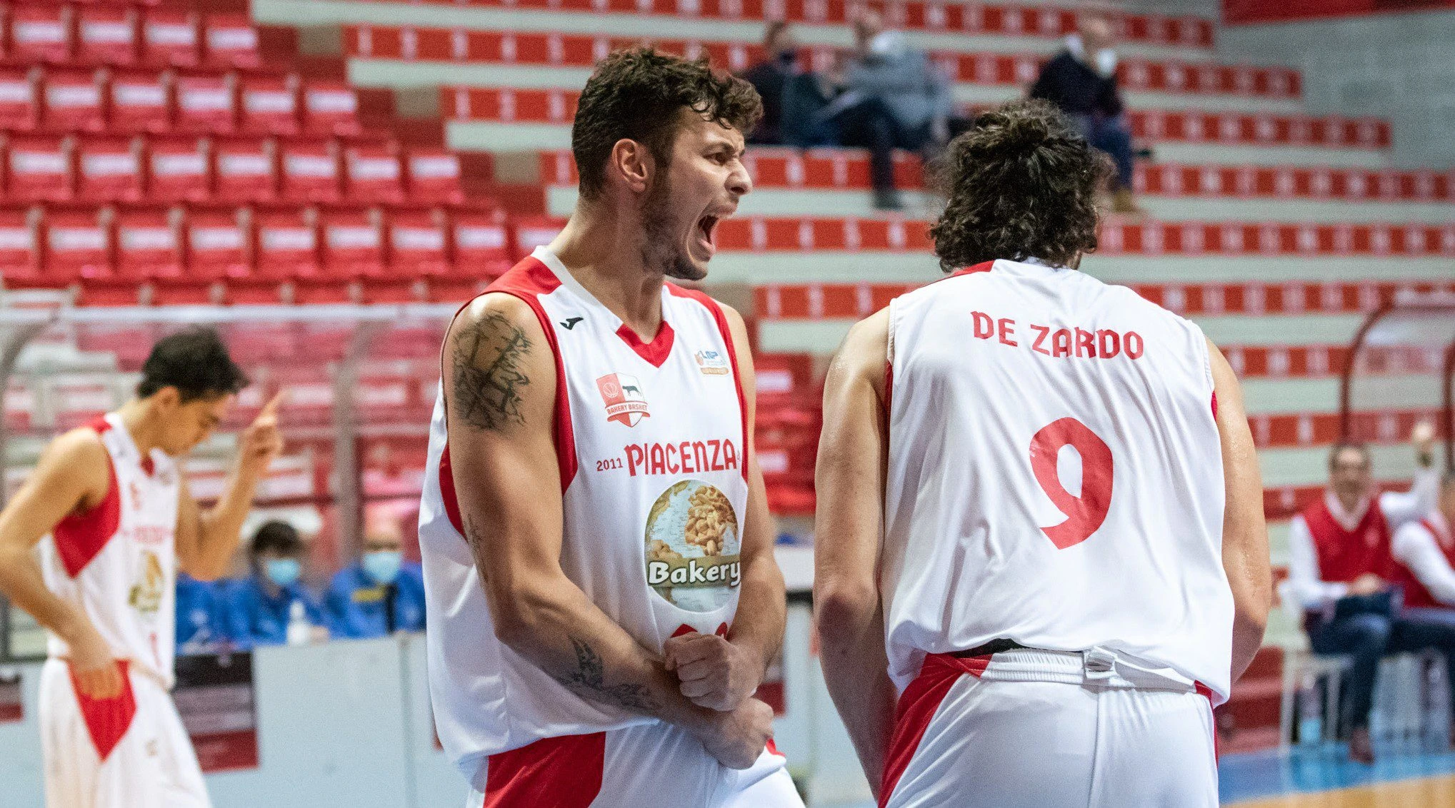 La Bakery Piacenza esce vincitrice da un match con mille insidie, ai danni di una Piadena che ha dato tutto fino al fischio finale. Una Bakery che soffre nel terzo quarto, ma che nell’ultimo con una gran prova di reazione, trova le ultime forze per sfangare una partita più complicata del previsto. Cinque sono i biancorossi in doppia cifra: De Zardo (18 pt.), Vico (17 pt.), Planezio (13 pt.), Pedroni (13 pt.) e Sacchettini (11 pt.). La grinta e la fame dei biancorossi, sono state le chiavi per vincere un match importante, che prolunga così i biancorossi verso la partita con Olginate, in programma per sabato alle ore 21.00.
