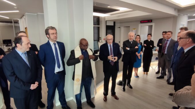 Il parroco don Adophe Houndji ha impartito la benedizione ai locali coinvolgendo i presenti in un momento di preghiera.