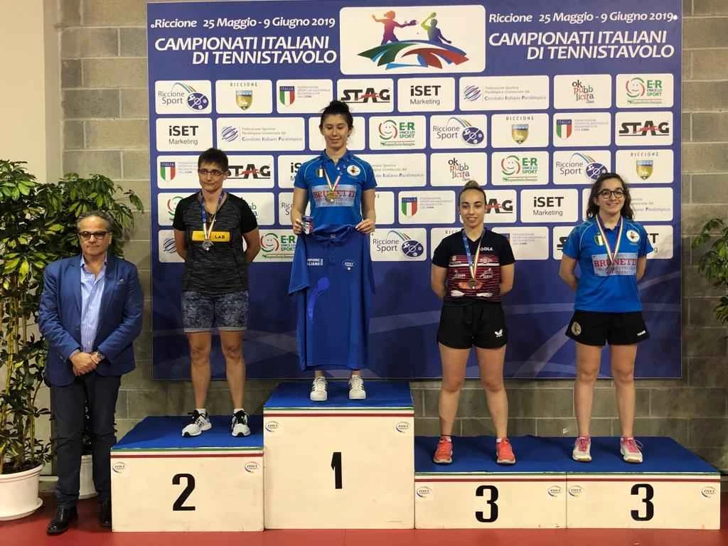 A tabellone vince su Vivarelli Evelin dell’ Eppan Bolzano 15-13/ 11-8/11-5 dopo equilibri e studio tattico nel primo set , un crescendo senza storie , poi arriva la N2 del tabellone l’italo ungherese Nagy Elisabetta del tennistavolo Coccaglio pongista con passati internazionali di altissimo livello ne esce un 3-0 addirittura disarmante 3-0 11-6/11-5/11-4 la vittoria vale il podio