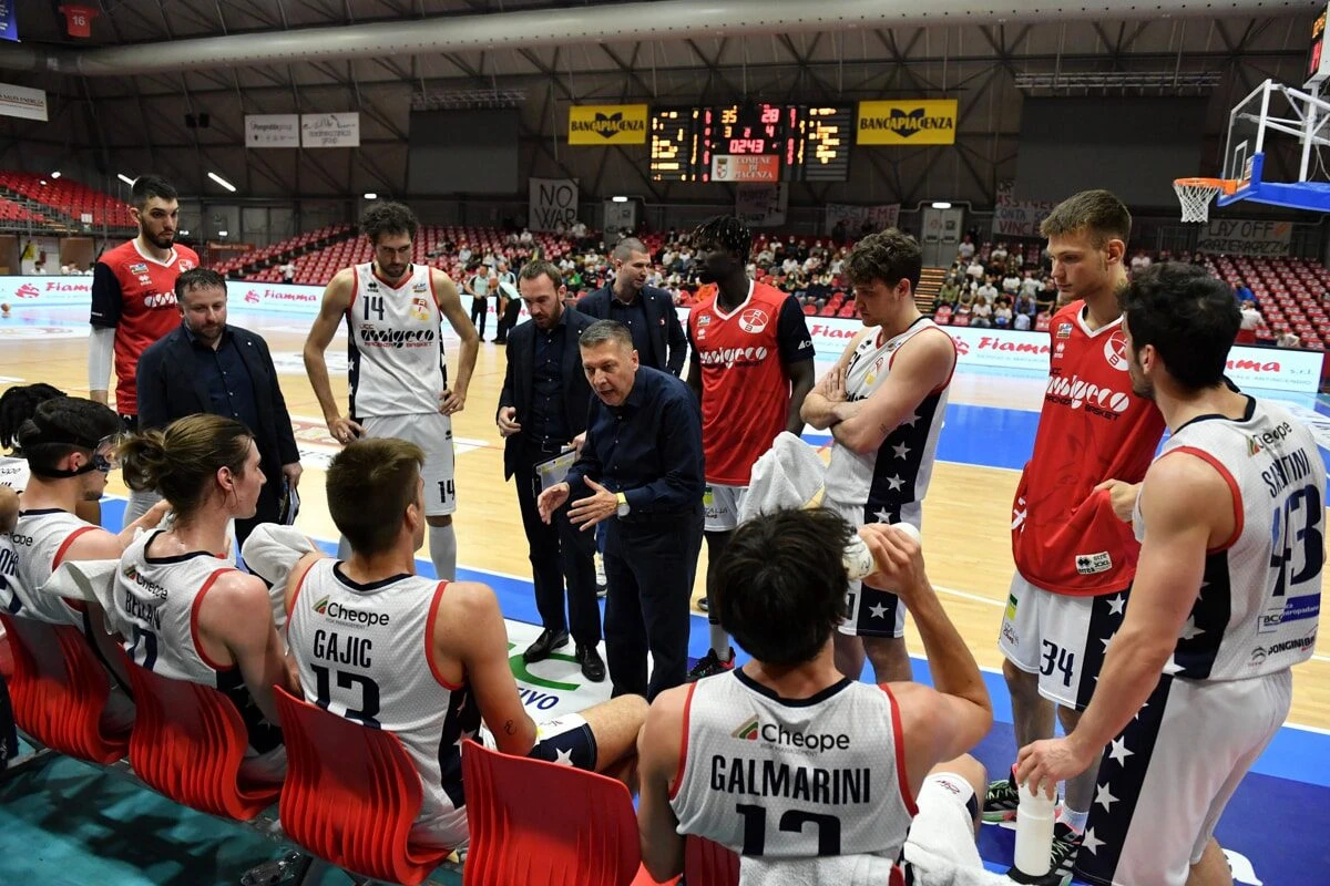 Il roster dell’Assigeco Piacenza: coach Salieri (confermato), Querci, Gajic, Galmarini, Sabatini.