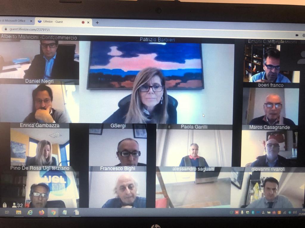 Benedizione della Banca del tutto inedita. Quest’anno don Ezio Molinari (l’Istituto di credito è sito nella Parrocchia di San Francesco, in un’area sulla quale sorgeva una Chiesa, nella via di S. Nicolò perché portava all’omonimo edificio sacro) ha impartito la benedizione pasquale davanti a pochi Amministratori ed impiegati alla dovuta distanza di sicurezza e con mascherina, sacerdote compreso.