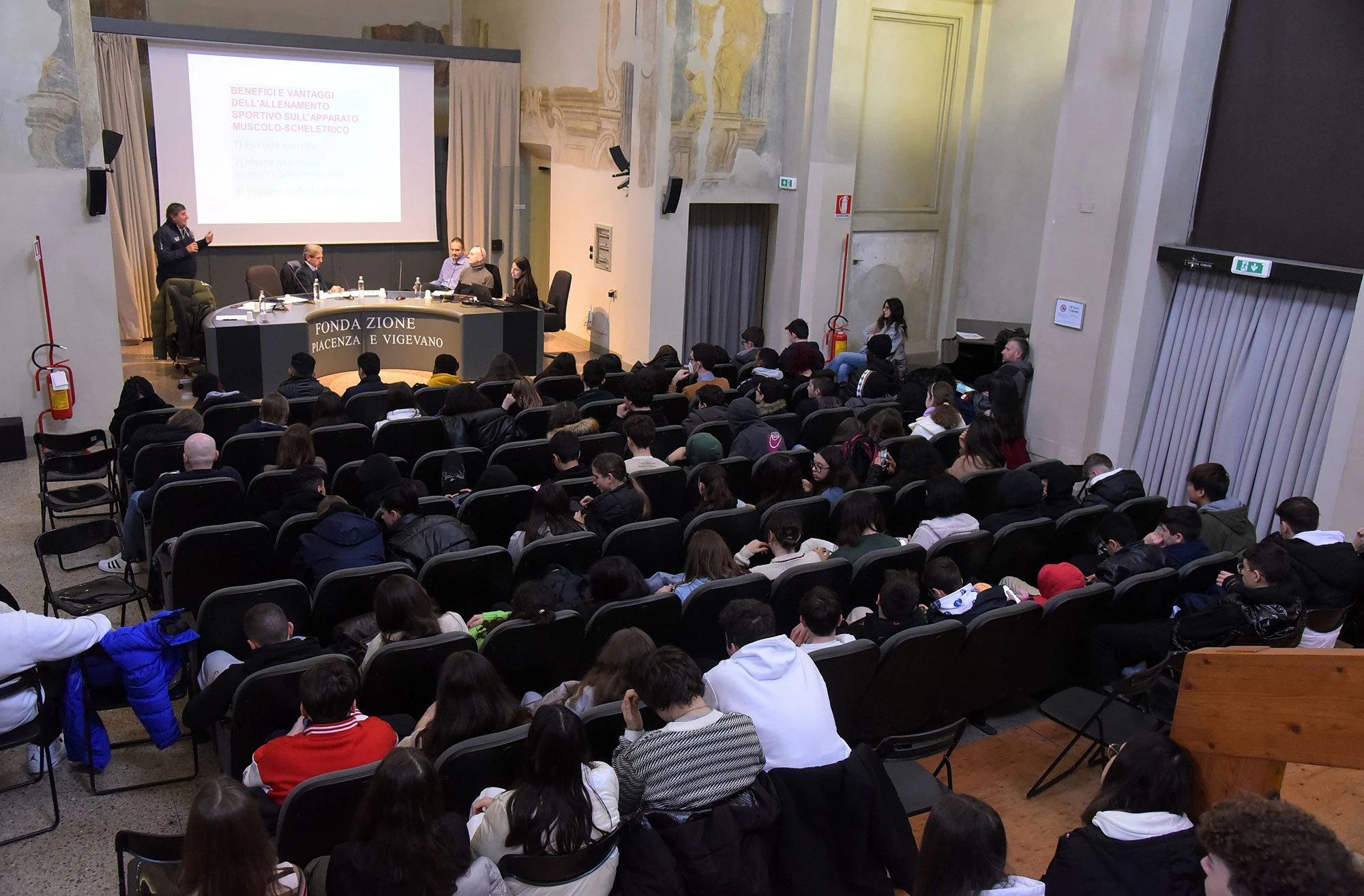 Fare sport, muoversi a piedi e un’alimentazione equilibrata sono i cardini di uno stile di vita che non solo contribuisce alla salute del corpo, ma che ha anche effetti positivi sulle performance scolastiche, sulla capacità di attenzione e sull’ambiente che ci circonda. Un’ampia e documentata riflessione su questi e altri temi è stata proposta ieri e oggi a oltre 500 studenti piacentini delle classi prime delle scuole secondarie di primo e secondo grado di Piacenza che, suddivisi in quattro turni, hanno seguito una speciale lezione di educazione alla salute a cura di Giorgio Chiaranda, responsabile del Servizio di Medicina dello sport e promozione della salute dell’Azienda Usl di Piacenza, da Fiorenzo Zani, responsabile dell’Ufficio scolastico provinciale di Piacenza per educazione fisica e sport, da Giovanni Montani, presidente provinciale della Federazione Medico-sportiva e dal pediatra Paolo Zanasi.