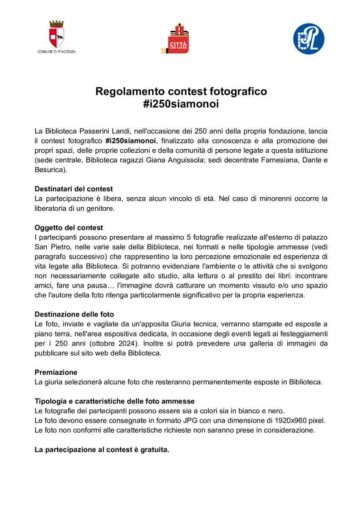 Biblioteca Passerini-Landi, Contest fotografico #i250siamo noi