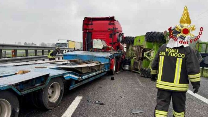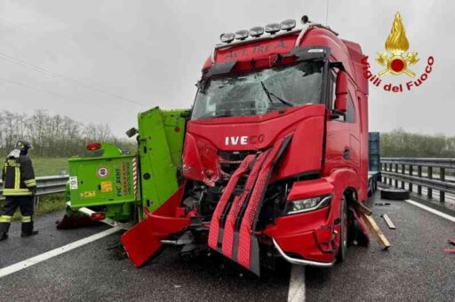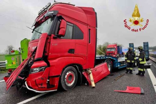 Scontro tra un tir e una bisarca, disagi in autostrada e un camionista ferito. I fatti sono accaduti lungo l’autostrada A21, all’altezza di Calendasco. I due tir stavano viaggiando in direzione Torino quando, per motivi da chiarire, si sono scontrati.
