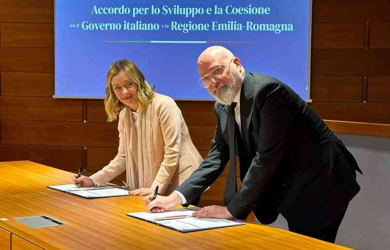 Questa mattina, a Bologna, nella sede dell’Amministrazione regionale, la firma dell’Accordo FSC tra la presidente del Consiglio, Giorgia Meloni, e il presidente della Regione, Stefano Bonaccini, presente il ministro per gli Affari europei, le Politiche di coesione e il Pnrr, Raffaele Fitto.
