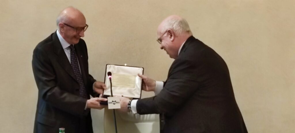 Il dott. De Lucia, al termine dell’interessante e seguita presentazione, ha ricevuto dal presidente del Cda della Banca Giuseppe Nenna la “Targa del benvegnu”, testimonianza dell’antica tradizione dell’accoglienza piacentina.