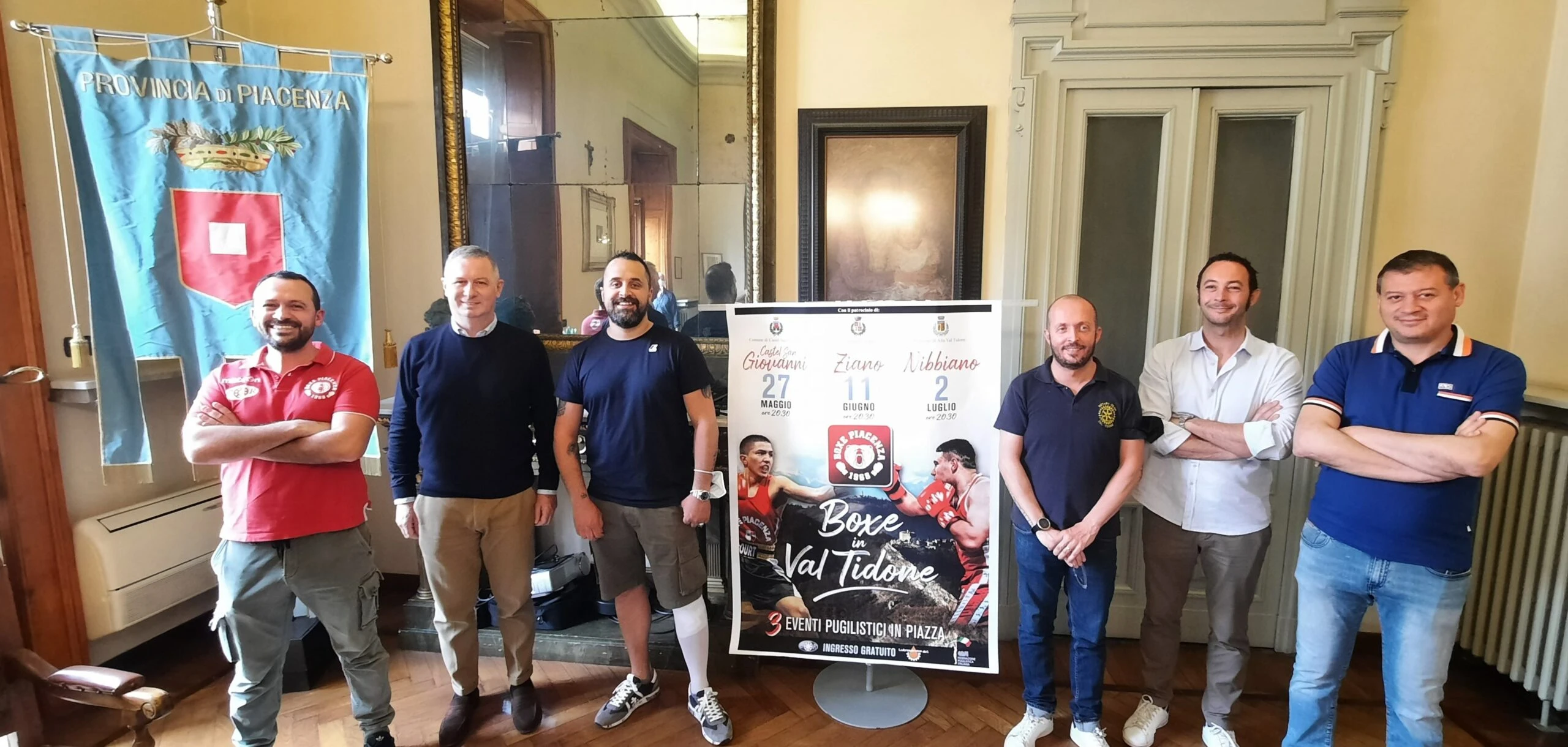 Il programma completo degli appuntamenti è stato presentato giovedì 26 maggio in Provincia dal sindaco del Comune di Alta Val Tidone e vicepresidente della Provincia Franco Albertini, dal sindaco di Ziano Piacentino Manuel Ghilardelli e dall’assessore a Sport e Tempo libero del Comune di Castel San Giovanni, Massimo Bollati. A fornire i dettagli delle tre serate sono intervenuti – per l’associazione sportiva Boxe Piacenza – i dirigenti Stefano Pezzati e Daniele Gobbi e il tecnico allenatore Nicola Campanini.