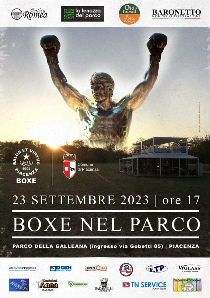 Sabato 23 settembre al Parco della Galleana a Piacenza (ingresso via Gobetti) a partire dalle ore 17 è in programma “Boxe nel Parco” con i pugili della Salus et Virtus. La storica società piacentina presenta i suoi pugili in forte crescita attraverso match maschili, femminili e dedicati agli esordienti.