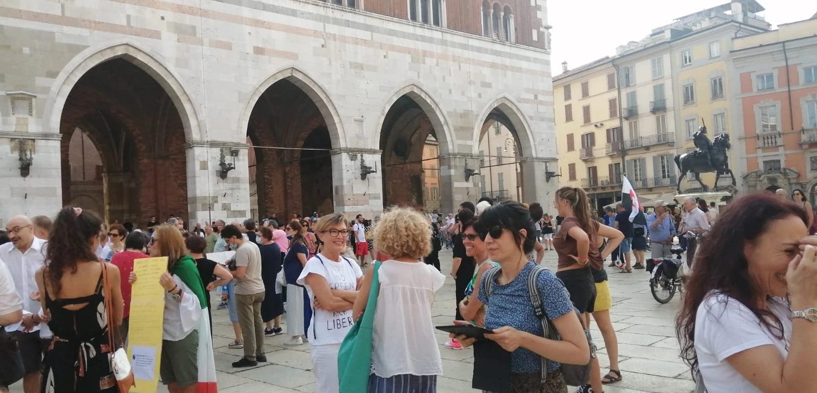 Manifestazione contro il Green Pass a Piacenza, “Non è una cura, è un ricatto“. Questo uno degli slogan gridato, assieme a “libertà”, dai cittadini che nel pomeriggio di oggi (sabato 24 luglio) si sono radunati spontaneamente in Piazza Cavalli contro la decisione del Governo di utilizzare questo metodo dal 6 agosto per accedere a qualsiasi tipo di servizio. In particolare si parla di ristorazione al tavolo al chiuso, spettacoli, eventi e competizioni sportive, musei, istituti e luoghi di cultura, piscine, palestre, centri benessere, fiere, sagre, convegni e congressi, centri termali, parchi tematici e di divertimento, centri culturali e ricreativi, sale da gioco e casinò e concorsi pubblici.