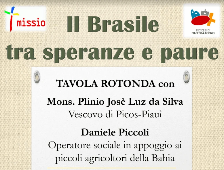 Moderati dal missionario Don Giuseppe Frazzani, ora parroco di Carpaneto, in Brasile per diversi anni, interverranno Mons. Plinio Josè Luz da Silva, Vescovo della diocesi di Picos (Piauì – Brasile) e Daniele Piccoli, piacentino, da anni impegnato in Brasile come operatore sociale in appoggio ai piccoli agricoltori della Bahia. Alla tavola rotonda, si aggiungeranno le testimonianze di alcuni sacerdoti provenienti dalla Diocesi di Picos, Don Francisco Bezerra e Don Francisco di Assis Sousa, che stanno ora prestando servizio presso la nostra Diocesi.