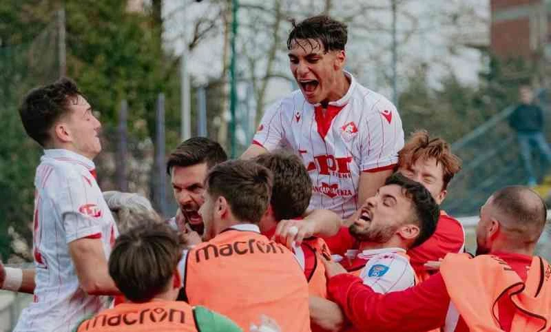 Dopo l’espulsione, i padroni di casa sono costretti a difendersi, complici l’inferiorità numerica e le tante occasioni create dai biancorossi, una su tutte un tiro al volo di Gerbaudo messo in calcio d’angolo da Passeri. Proprio l’estremo difensore, però, è l’artefice della rete cha ha sbloccato il match: al limite dell’area Selvatico appoggia per il portiere che liscia completamente il pallone che termina la sua corsa in rete. Il primo tempo finisce sul punteggio di 0-1.