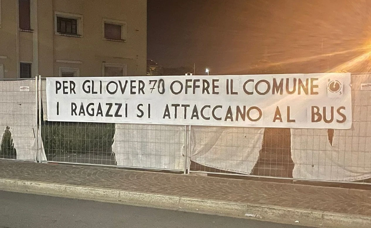 Nella notte sono stati affissi striscioni firmati dal Blocco Studentesco, in contestazione alla decisione del comune di esentare dal pagamento del servizio autobus gli over-70 indipendentemente dalla fascia di reddito.