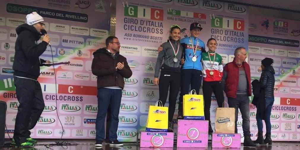 Si chiude con un bel podio e due piazzamenti l’intenso week end ciclocrossistico del Cadeo Carpaneto, iniziato con le gare del venerdì festivo. La prima domenica di novembre offriva due scenari di gara: a Osoppo (Udine), sede della quinta tappa del Giro d’Italia, l’Esordiente ligure Irma Siri ha centrato il secondo posto, alle spalle solamente di Bianca Perusin e davanti alla tricolore Beatrice Temperoni (Ciclistica Bordighera). Top ten anche per la compagna di squadra piemontese Marisol Dalla Pietà, decima. In contemporanea, a Corlo di Formigine (Modena) nuovo piazzamento per l’Esordiente piacentino Matteo Piscina, decimo.