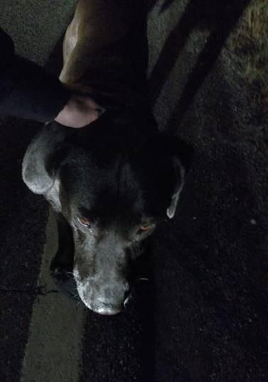 Tra Ponte dell’Olio e Bettola di notte le macchine sfrecciano velocemente. Un po’ smarrito e impaurito il cane si è lasciato avvicinare, la guardia ha così potuto controllare l’eventuale presenza di una targhetta.