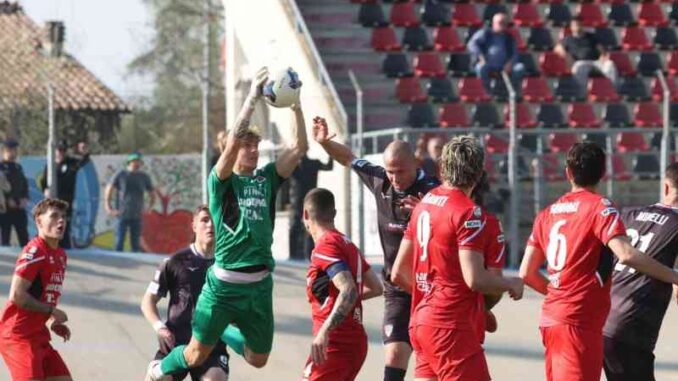 37′ miracolo di Sorzi su Siafa che colpisce di testa su cross dalla sinistra: grandissima risposta d’istinto del portiere rossonero che da pochi cm toglie la palla dalla porta