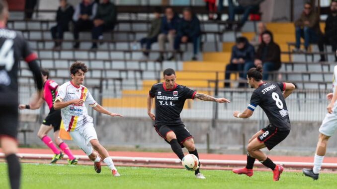 14′ altra occasione per gli ospiti: cross dalla destra e colpa di testa di Energe che anticipa anche il suo compagno Della Latta, posizionato molto meglio di lui, palla alta
