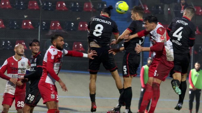 10′ Fiorenzuola in vantaggio con Mastroianni: grande azione di Mamona che strappa e fa 50 metri palla al piede, allarga sulla sinistra per Sartore che crossa in mezzo e Mastroianni, di piatto destro, davvero non può sbagliare. Rossoneri avanti