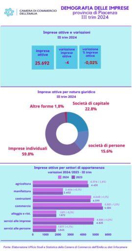 Camera di commercio dell’Emilia comunica che si è chiuso all’insegna della stabilità il terzo trimestre 2024 per le imprese piacentine.