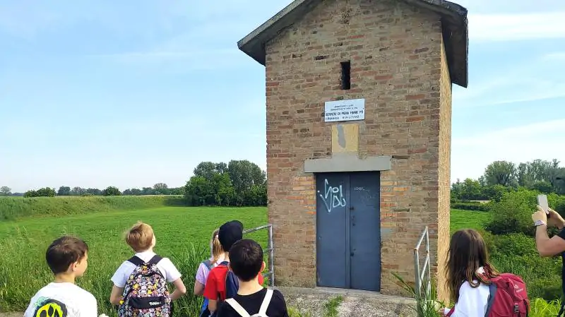 I bambini, suddivisi in tre gruppi, sono arrivati in bus sino al piazzale antistante l’impianto sportivo della Società Vittorino da Feltre, raggiungendo a piedi l’argine ciclopedonale dove sono stati accolti da Infoambiente per una lettura guidata dei paesaggi fluviali e un inquadramento del contesto: dalle informazioni sulla riserva di biosfera “MAB Unesco Po Grande” alle indicazioni per orientarsi, dal ruolo della biodiversità alla città sul terrazzamento fluviale. Seconda tappa con Aipo e Protezione Civile, per parlare di sicurezza idrogeologica, della funzione degli argini e delle attività di prevenzione, con una vera e propria prova di costruzione di rinforzo utilizzando i sacchi di sabbia.
