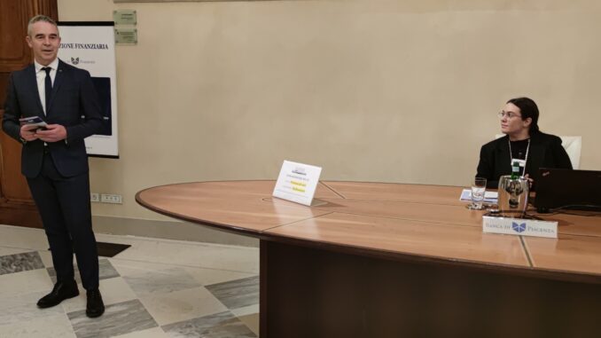 Dopo il saluto introduttivo del vicedirettore generale della Banca Pietro Boselli, Laura Bonfanti – curatrice della rassegna di quadri e fotografie che rappresentano scorci della città che non ci sono più, che si è occupata dell’aggiornamento di testi e fotografie della guida, la cui prima edizione risale al 1991 – ha illustrato gli itinerari cittadini proposti da “Camminando per Piacenza” («dove si incontrano chiese, piazze, pregevoli monumenti e bellissimi palazzi»): 14 percorsi che offrono la possibilità di scoprire alcuni degli angoli più suggestivi del centro storico che nel tempo, come testimonia la mostra in corso nel già Palazzo Galli, sono stati oggetto di modifiche architettoniche che ne hanno cambiato radicalmente il volto. L’itinerario parte e si conclude in Piazza Cavalli e «permette – ha sottolineato la dott. Bonfanti – di conoscere meglio la città, luogo di antiche origini dotato di pregevoli testimonianze artistiche, storiche e monumentali».