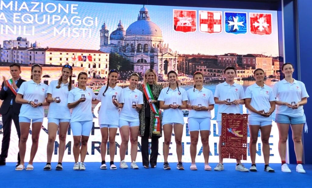 La gara ad equipaggio misto, svoltasi a Venezia il 2 giugno, giorno della Repubblica, su un percorso di gara di duemila metri con partenza dal Ponte dell’Aurelia e arrivo in Canal Grande, è stata vinta dalla squadra di Amalfi composta sia da uomini che da donne. Al secondo posto, in equipaggio esclusivamente femminile, si è classificato il galeone genovese sua cui ha trovato posto anche Gemma Ghinelli, giovane portacolori della Vittorino da Feltre schierata sul quarto carrello.