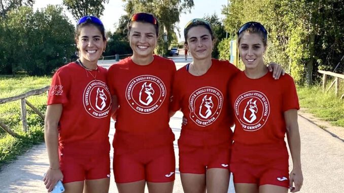 Un oro meritato, ulteriormente impreziosito da tre medaglie d’argento. Gemma Ghinelli è infatti salita sul secondo gradino del podio nella prova del singolo sulla distanza sprint dei cinquecento metri, piazzandosi alle spalle dell’azzurra (reduce dai mondiali) Giulia Mignemi del CUS Insubria e davanti a Linda Manzoni (Insubria). Medaglia d’argento per l’atleta piacentina anche nell’altra gara del quattro, con lo stesso equipaggio del CUS Genova, vinta ancora dal CUS Insubria e con il CUS Milano a completare il podio. Terza medaglia d’argento per Gemma Ghinelli nella prova del doppio, con l’equipaggio del CUS Genova diviso in due, Perugino-Grassi su un’imbarcazione e Ghinelli-Falossi sull’altra, con il primo equipaggio dell’ateneo genovese vincitore della medaglia d’oro e la piacentina della Vittorino ancora sul secondo gradino del podio, con il Cui Bari al terzo posto finale.