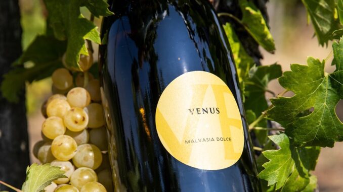 Venus Colli Piacentini Malvasia DOC spumante dolce 2021. Questo vino è ottenuto mediante la spumantizzazione con il metodo Martinotti (metodo Charmat) per preservarne gli aromi primari sia al profumo che al gusto.