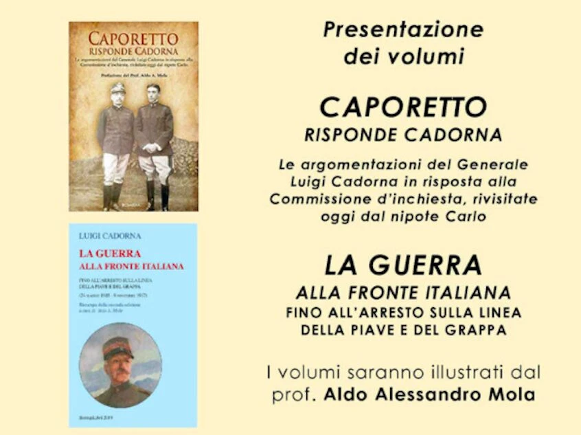 I volumi “Caporetto risponde Cadorna” e “La guerra alla fronte italiana” saranno illustrati dal prof. Aldo Alessandro Mola.