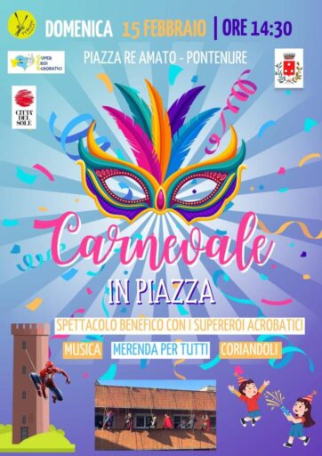 Piazza Re Amato è pronta ad accogliere una grande festa in maschera con musica, giochi con la presenza dei SuperEroiAcrobatici e la merenda per i bambini presenti.