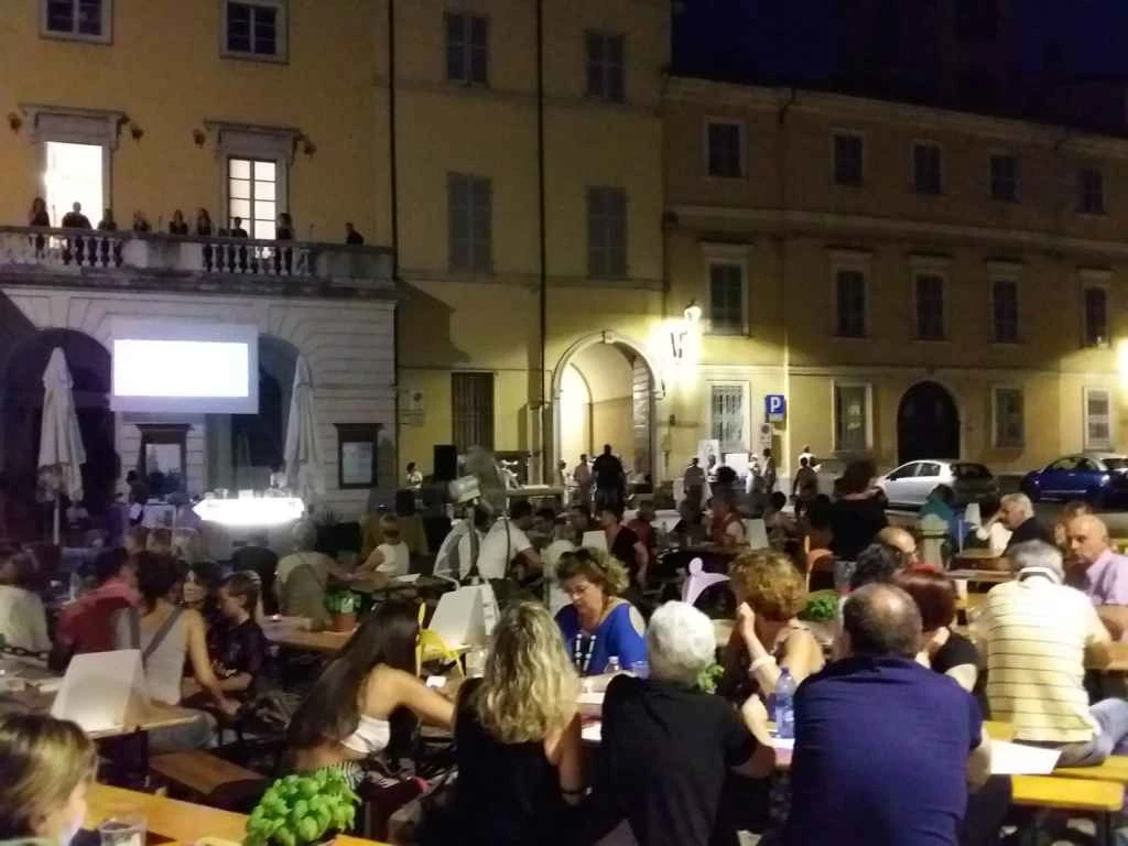 Una serata in cui la pizza margherita e la torta fritta hanno fatto da contorno allo spettacolo di musica dalla balconata del Teatro municipale. Spettacolo che – complice la luce calda della piazza – ha emozionato tutti gli spettatori. L’allestimento della piazza, ad opera dei volontari della Casa di Iris, era iniziato dalle tre del pomeriggio, in una delle giornate più torride dell’anno.