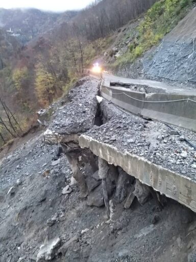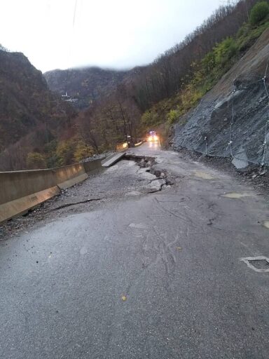 Nella giornata di domenica 16 novembre, infatti, il Servizio Viabilità della Provincia di Piacenza aveva proceduto ad eseguire le operazioni di pulizia lungo la Strada Provinciale n. 586, nel tratto compreso tra Marsaglia e Salsominore, a seguito di caduta massi. L’intervento non aveva richiesto però l’istituzione di limitazioni al transito. Nella stessa giornata si era attivato un costante monitoraggio del fenomeno franoso lungo la Strada provinciale n. 586R al km 20+700, in prossimità della diga Boschi, che nella notte tra domenica 16 e lunedì 17 novembre è peggiorato, generando il cedimento di quel tratto di strada.