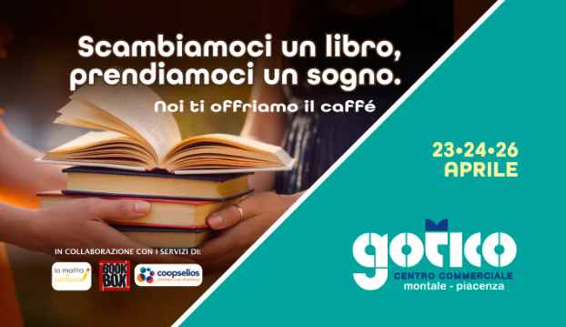 Dal 23 al 26 aprile, in occasione della Giornata Internazionale del Libro, il Centro Commerciale Gotico di Piacenza ospita una nuova edizione del Book Swap, l’iniziativa dedicata allo scambio di libri tra lettori e alla promozione della lettura come gesto di condivisione e crescita collettiva.