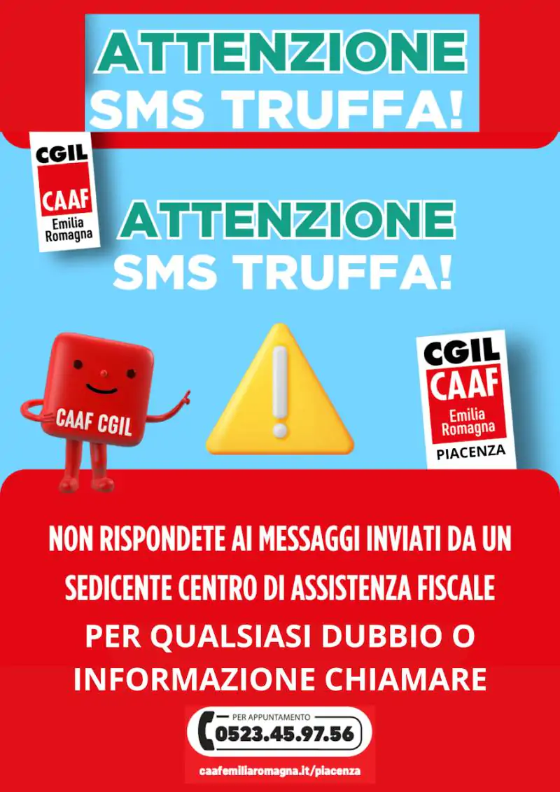 Si ricorda che i messaggi SMS inviati dal CAAF hanno come mittente ‘CAAFCGIL PC‘ e fanno esclusivamente riferimento al numero unico provinciale di Piacenza 0523 459756.