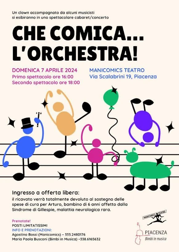 “Che comica l’Orchestra“, è uno spettacolare cabaret / concerto che andrà in scena presso il Teatro Manicomics di Piacenza domenica 7 aprile 2024 con un doppio appuntamento alle 16.00 e alle 18.00.