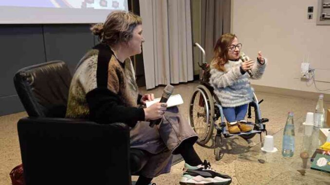“Beh, il tema che ovviamente più mi appartiene in questo senso è la disabilità. Come la profondità e la complessità dell’esistenza in tutta questa categoria marginalizzata che pure riguarda tutte le persone che hanno un corpo venga spesso appiattita a un simbolo, a un logo, a qualcosa di molto piatto e bidimensionale”.