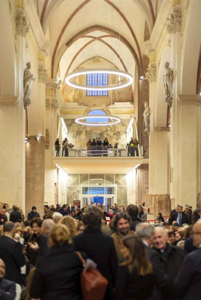 E’ stato però necessario che trascorresse ancora più di un secolo per un globale intervento di restauro. Intervento finalizzato a recuperare il grandioso fabbricato di origine monastica. La chiesa, a tre navate, ha un impianto planimetrico di immediata e semplice lettura; divisa in sei campate e scandita da otto colonne in laterizio è caratterizzata da una zona absidale perfettamente inserita in questa proporzione geometrica.