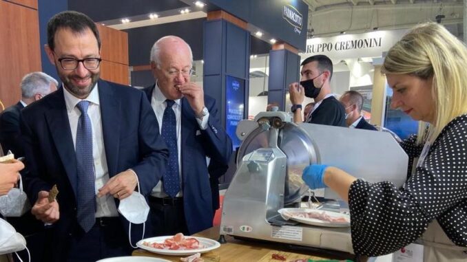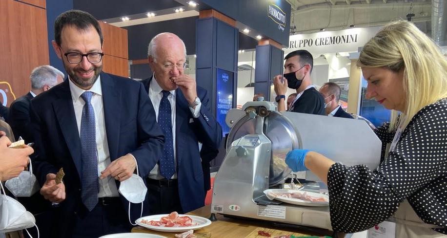 Cibus, il ministro Patuanelli fa i complimenti alla coppa piacentina: ospite allo stand del Consorzio Salumi DOP